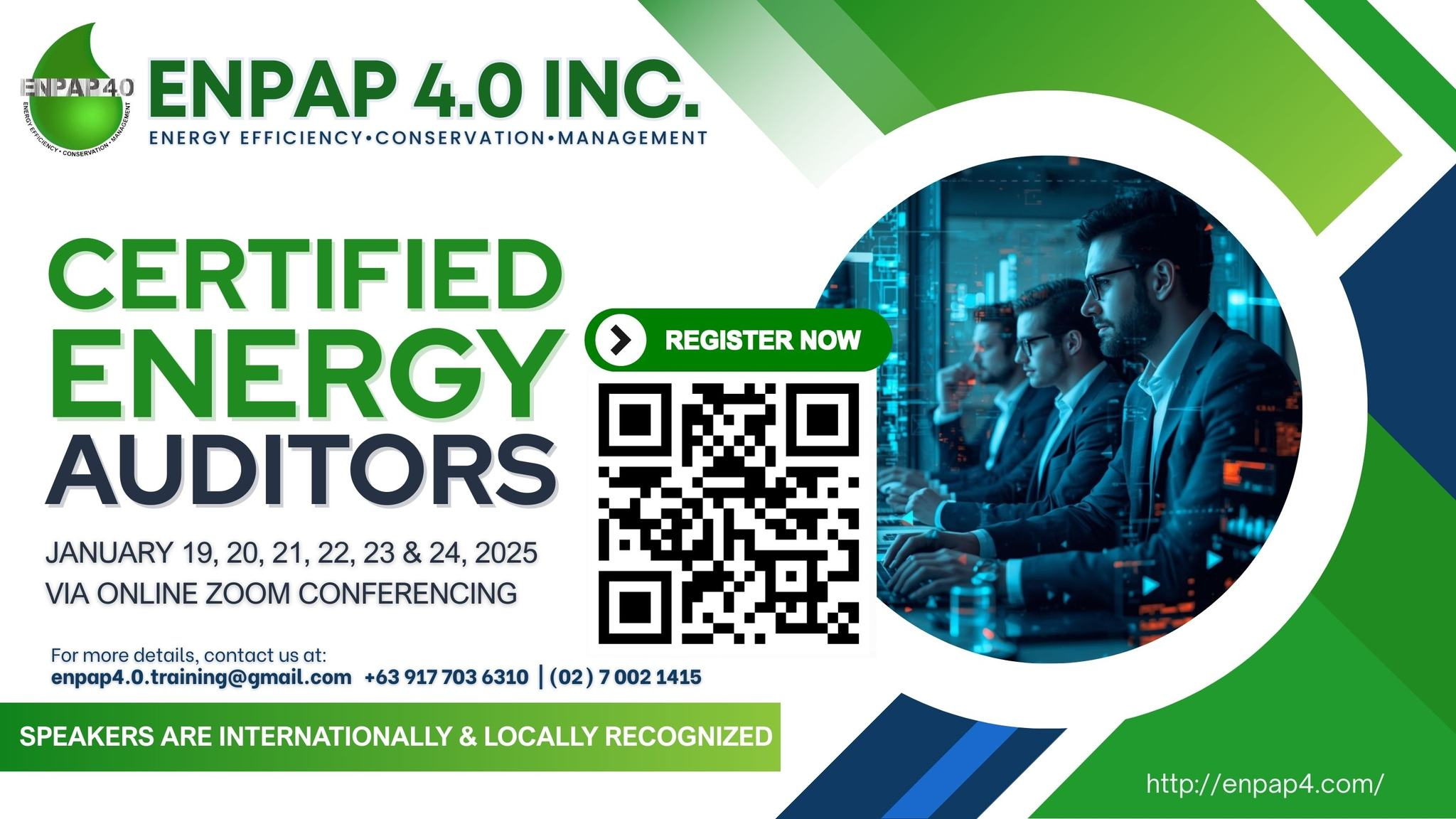 This January, ENPAP 4.0 Inc. invites you to our comprehensive Certified Energy Auditors program. This 6-day webinar features speakers recognized both locally and internationally.